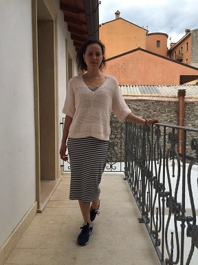 а еще как думаете, подойдет ли под этот свитер шелковый топ? мне кажется он сам немного фактурой вязки...а если еще кружево, то будет перебор...или пойдет? вот с таким образом (топ белый или голубой)