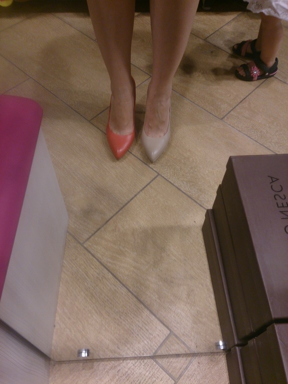 А по туфелькам.... вот не пойму.... бежевые хорошо. но лососевые как то сели лучше чтоли.