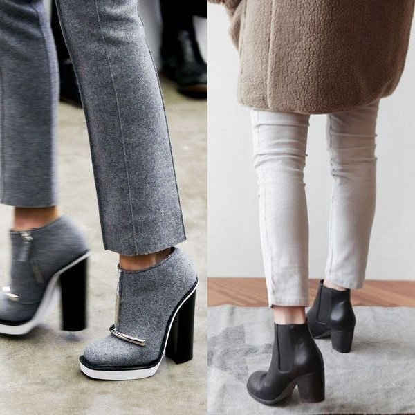 ПосоветуйтеХочу заказать такие вот брюки на осень/зиму (надеюсь, что пойду на работу, крещу пальцы) и думаю с чем носить О_о. У меня есть только полусапожки на 10 см каблуке, но они выше косточки на ладонь и не по ноге. Думаю, что с такими никак. Туфли максимум до конца октября, а дальше что носить?