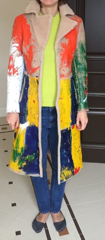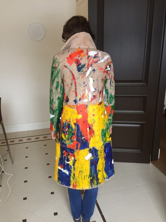 Верхняя одеждаДнем ко мне заглянула подруга, устроив стриптиз вручила свою дубленку со словами "Акс разрисует" и голая отправилась во вьюгу. Пришла Акс(дочка), и абсолютно невменяемая мамаша(я) стала скакать по дому с красками, лопатками (мастихинами) и кисточками. Ребенок 2 с небольшим радостно повизгивал, то ли опасаясь моего сумасшествия, то ли присоединяясь к нему. Разумная бабушка кричала про отдайте дубленку, умоляла прекратить,и убеждала что Женя пошутила. Спустя час нас нашел папа, с перемазанными лицами, кафелем и испорченными шторами. Спросил не видели ли мы его дочку и жену, и грозился вызвать полицию, если мы не расскажем где они и кто,собственно говоря, мы. Шторы пришлось выбросить, ребенка выбросить нельзя, поэтому она тихо отмокала в ванной и грозилась расписать все вокруг.