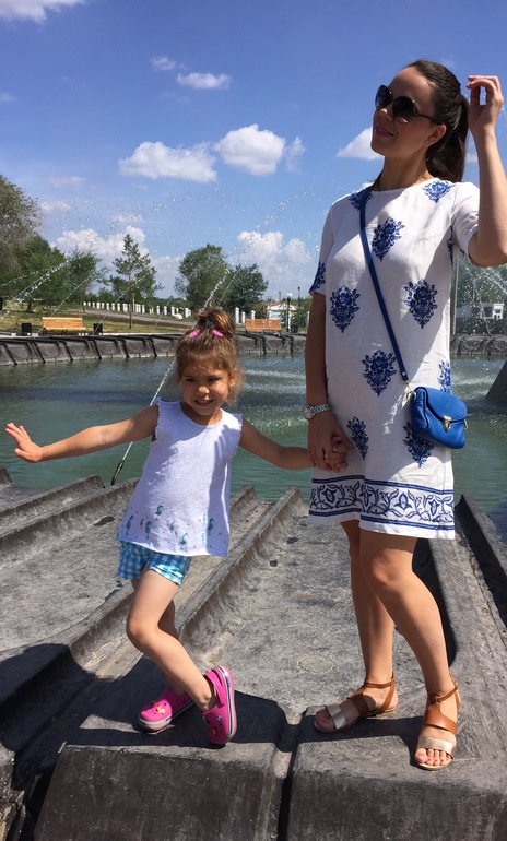 Я опять в льняном платье) дочке в Акуле прикупила футболочку. Вот только найти не могу на голову ей повязку- косынку однотонную.