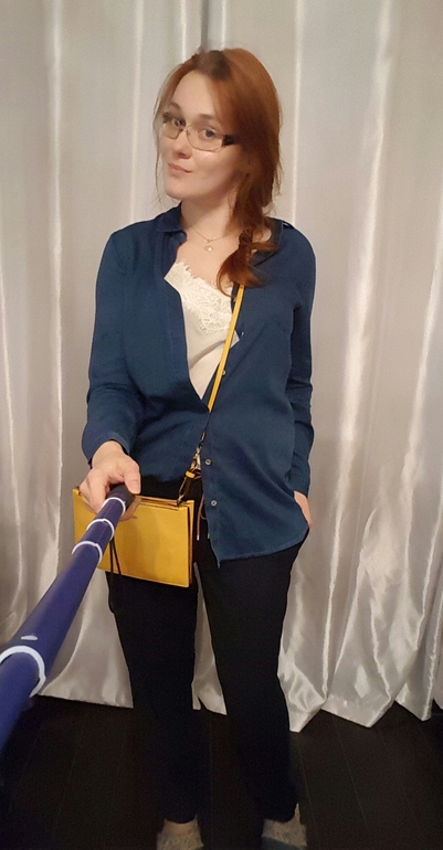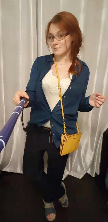 Майка шелк (цвет темно-синий). Рубашка хлопок. Напялила поверх штанов, т.к. просто мерию , но планирую другой низ сюда. Поеду завтра ещё на часик-другой. Главное Дутика стороной обойти