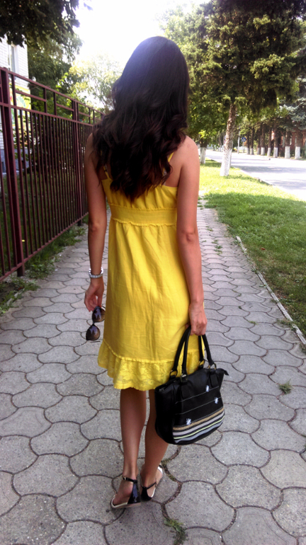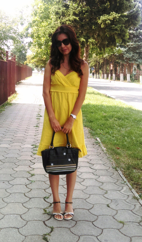 Классное платье. Но черная сумка мне нравится тут. Вот коралловая была бы более уместна! Ты красотка как всегда!!!