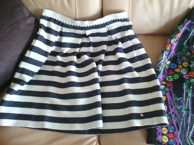 Мне откровенно первые две юбки никак... Третья вот отличная юбка, думаю, и посадка у неё хорошая должна быть. С однотонным верхом (темным, светлым) - кеды, босоножки, сандалии, туфли -все что угодно сюда подойдёт. Тельняшка вообще универсальная, я ношу с шортами, брюками, однотонными юбками.