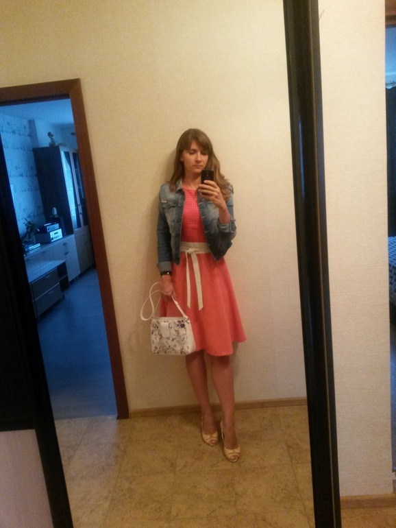 Платье хорошее. Фигурка у вас замечательная.Про возраст. А вам сколько, стесняюсь спросить? С джинсовкой- я бы с кедами носила, или еще чем-нить на плоском ходу и поспортивнее образ, волосы в хвост, рукав джинсовки подкатать и пр. Аксы или нюдовые, светло серые, светло мятные, св. Желтые, голубые и прочие пастельные. В инете полно палитр цветовых сочетаний. Обязательно что-нибудь приглянется.