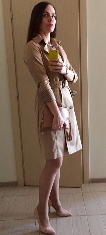 Очень даже будет👍 Можно джемпер как ниже+ Манишку или + белую рубашку и колье подходящее. Кажется у вас и зелёная сумочка есть, может и сюда впишется. Вообще тренчи мне нравятся с рубашками офисными: голубыми, белыми, клетку можно...