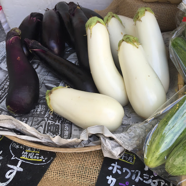 а на обратном пути попала на базар, иногда у нас выставляют палатки рядом со станцией. Увидела и купила вот такое чудо - белый баклажан. А вы такие встречали?