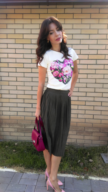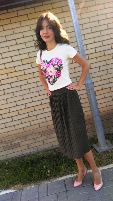Я сразу прикинула, что вещь подойдет к юбке хаки и пудровым туфелькам!