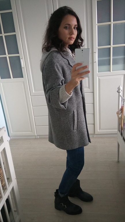 Есть вот такое пальто, оно на теплую осень, тоже люблю его) Под ним свитер, он отдельно) это вариант с ребёнком погулять.