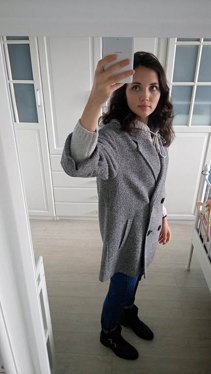 Ещё весной купила пальто. Дооолго искала, чтобы и состав был хороший и модель) Нашла! Весной правда поносила его мало, буду отрываться осенью) Тёплое! 90% шерсть, 5% шёлк, 5% нейлон, отличный состав, я считаю! Мусор не собирает, не скатывается.