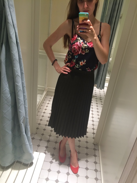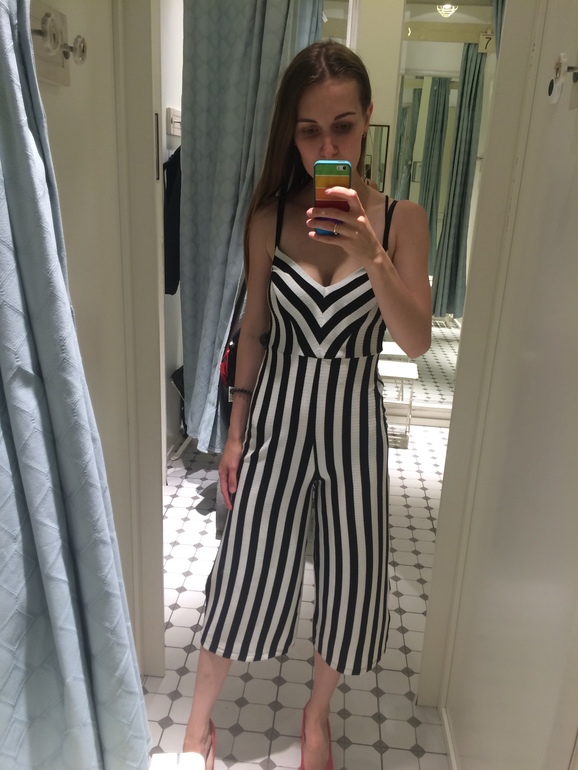 В комбезе как-то не село что-то. Вверх шикарно, а низ. Хочется или короче или длиннее ) или шире брюки ) но полоска очень вам хорошо ) и топ с юбкой очень вам классно! Цветы эти идеально вам подошли!