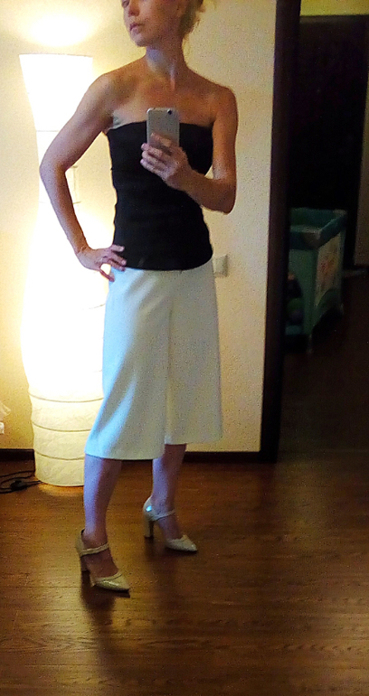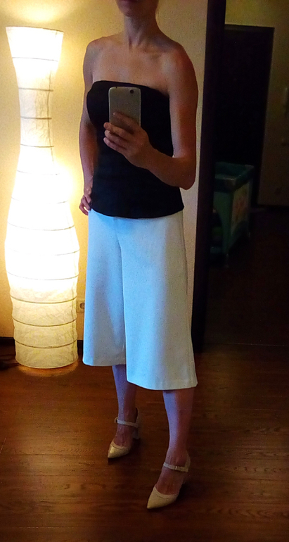 Недостатки: визуально могут укорачивать ноги и сплющивать силуэт. Компенсирую узким верхом в цвет или контрастным, тут это не важно, имхо...Обращаюсь с ними, как с юбками :))
