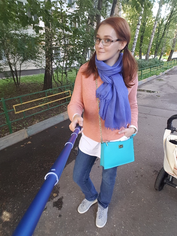 У тебя тут уже осенние краски, а летняя бирюзовая сумка выбивается из общего настроения)