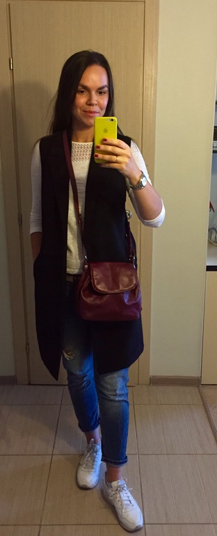 уже переоделась? ))) да ты интеллигенция прям! На завтрак-обед и ужин отдельные туалеты?!!! )))) белая кофтюлька симатичная, очень на тебе нравится