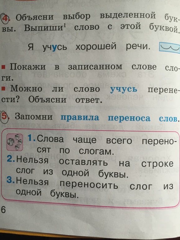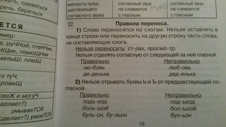 А какая программа у вас и кто автор учебника? Убила фраза чаще всего. Я считаю детям в началке надо четко научиться делить слова на слоги, а потом пусть учатся переносить по слогам. Забивать голову первоклассникам что делим так, а переносим вот так, это издевательство. Если открыть справочник с 5 по 11 там столько пунктов по переносу, вот с 5 класса пусть и морочат детям головы.
