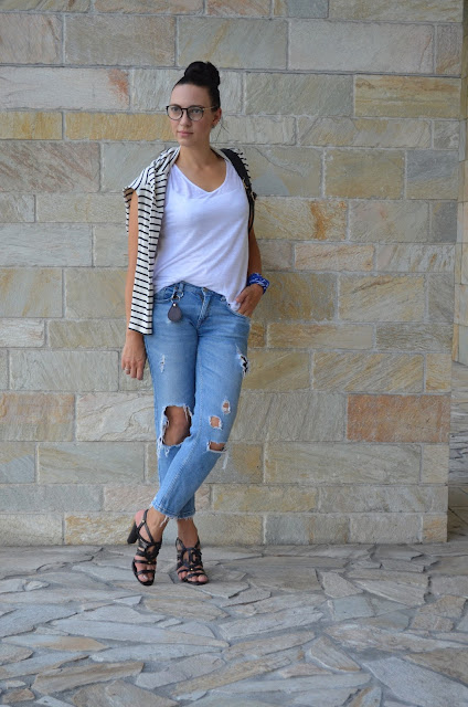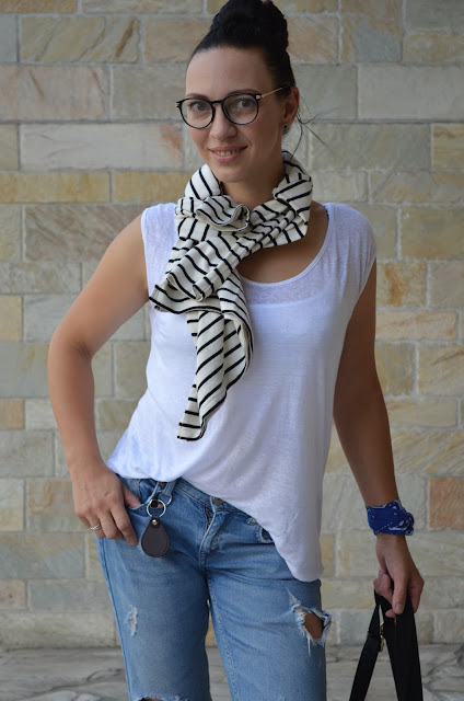 Да, да, у меня пока тельняшка в роли аксессуара, т.к. на улице плюс 30 и лето продолжается. Но на следующей неделе ждем тайфун, как раз можно будте спокойно сесть и рассказать про уход за кожей.