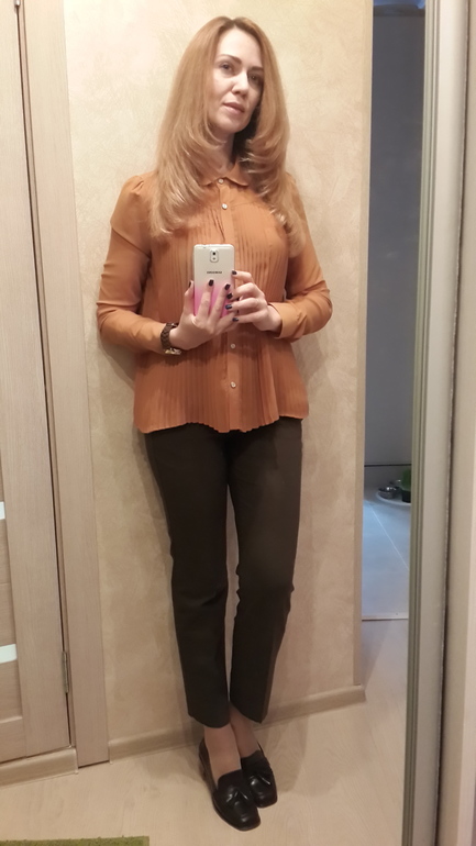Телефон как обычно переврал все цвета ((( блузка горчичного цвета, брюки цвета хаки...