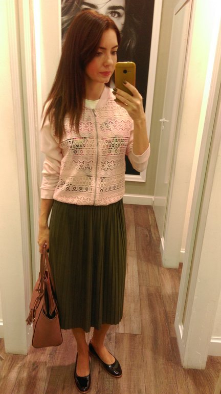 Ой, вот этот бомбер мне не нравится, сорри( хоть оо и розовый. Не нравится именно с юбкой такой, а сам по себе он хороший! Его бы с мамиными джинсами светлыми😇