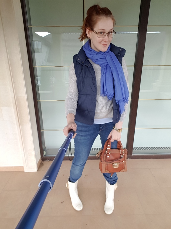 Отлично! Только сумку хочется сюда другую, не коричневую... а так - даже палка в тему по цвету получилась ))) кстати, что за фирма у селфи-палки? у меня палка под тяжестью телефона прогибается, хочу другую себе купить... (((