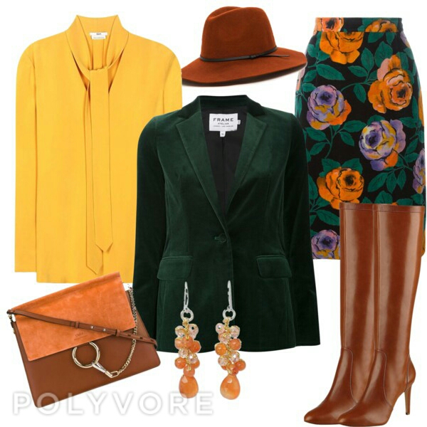 Сам жакет бархатный и пафосный, и если образ дневной то явно требует снять градус пафоса, идеально для этого джинсы и плоский ход. Вот тот образ где юбка возможно туфли на каблуке, но представьте плюсом сапоги и шляпу и яркую сумку???