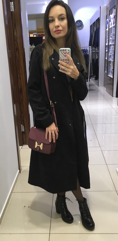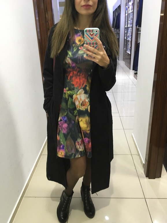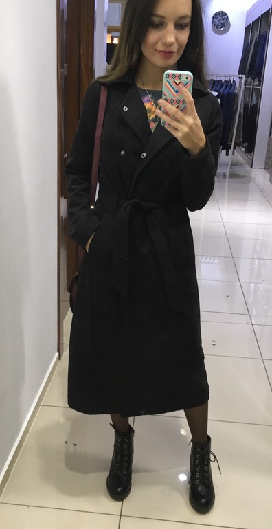 Я никогда не могла себе купить плащ/пальто/тренч, потому что я маленькая, и все время было все не то. А здесь, надела и хорошо. Ничего не надо ушивать, подшивать, укорачивать) Плащ из искусственной замши, в жизни смотрится вообще супер, и на ощупь он просто прелесть))) Был ещё в коричневом цвете, но коричневый мне не идёт. Сумка тоже куплена на ламоде, с хорошей скидкой. Маленькая, качественная, цвет красивый, в общем очень удачная.