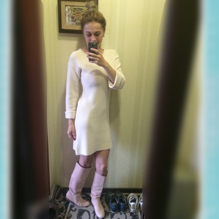 И самое главное , оно отлично подходит к моим сапожкам !!!! Моим чудесным розово-пудровым сапожкам!!!