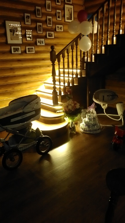 (один внизу,другой наверху).ночью очень удобно. у Вас из чего лестница? ясень?