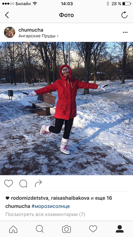 С инста есть фото) Это 1 января- мороз крепкий был поэтому упакована по уши)