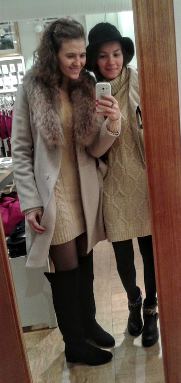 спасибо :) Ваше пальто мне тоже нравится, фото не очень удачное, но видно, что оно класснючее. У дочки пальто красивое и шапочка хорошенькая. Я своих дев не могу в пальто поместить, орут, что с пальто неудобно тяжелый рюкзак носить, хотя не так уж много они его носят, я всех вожу. И конечно, в пальто, неудобно после школы висеть вниз головой. Моя печаль :)