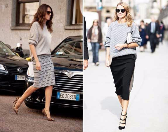 Специально пример. На первой фотографии юбка может сделать из вас "бабу на самоваре", второй образ как надо!