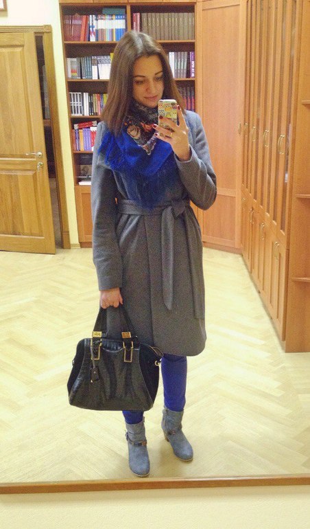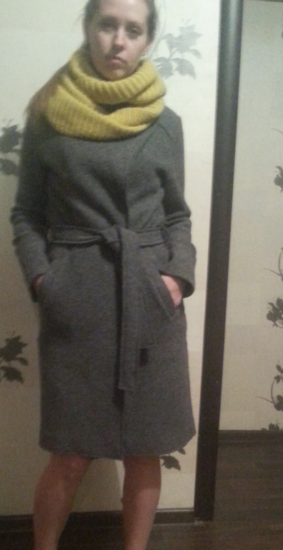 Ну вот хорошо снуд на Вас.Цвет только не на 100%.А узел уже лучше)))Пальто отличное!