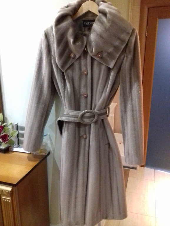 ой как бы объяснить,оно не тяжелое, ткань с ворсом,как тут пишут отдаленно на светлую норку похоже. Меня в нем бесит воротник, реально когда одеваю старше выгляжу. Ну пуговицы поменять, воротник не знаю как сделать,если не придумаю то повешу и пусть висит.