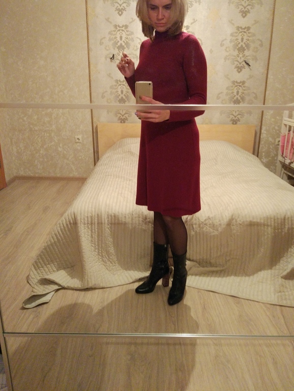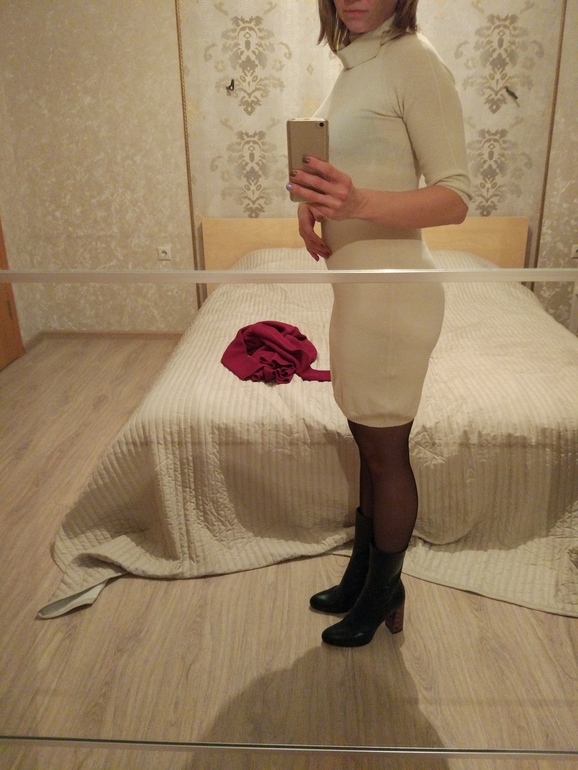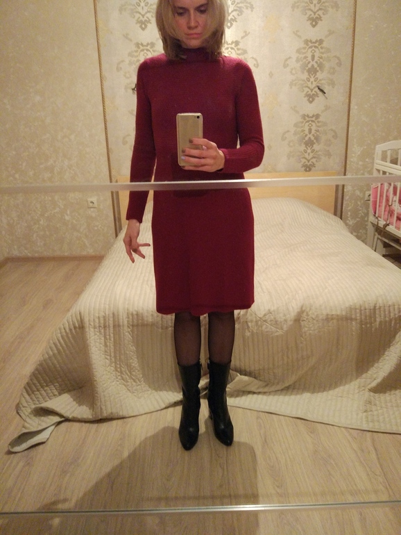 Я прям однозначно за бордо, только колготы можно и эти, если сапоги-то черные! Белое мне тоже понравилось, но из двух я все же за первое! Живота нет, везучка!