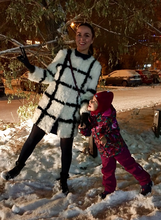 А еще, снега навалило у нас... так что, моя овечка со мной. Мне нравится сочетание шубы и ботнок. они тоже с овечкой))