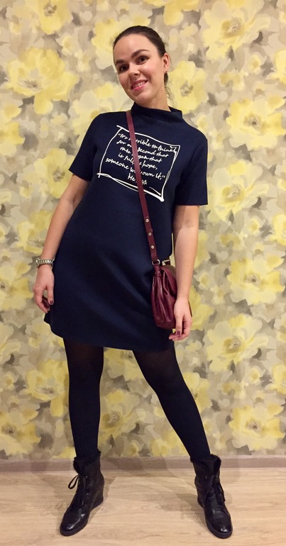 Синее плать+синие колготки. Мои мягкие и удоьные ботинки Карлуши.