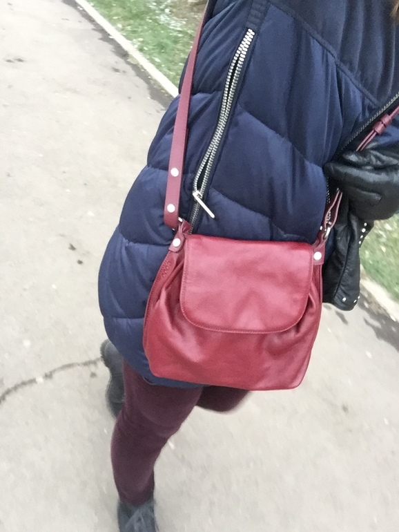 У Вас образ получился в тёмных оттенках и сумка должна быть бордового или тёмно-синего цвета. Купить сумку можно здесь http://www.baiberg.ru/collection/bags-for-woman В этом магазине продаются кожаные сумки. Моделей много и оттенков множество. Я думаю, что под эту одежду и рюкзак отлично подойдёт. Зато удобно будет с ребёнком на прогулке.