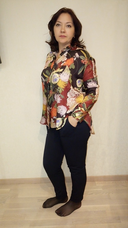 Купила блузку, очень нравится. Вроде должна быть универсальной вещью. Пока померила только с темно - синими брюками и пальто. Что еще можно придумать???? Мне кажется хорошо будут брюки бежевые или юбка. Но пока подобрать не могу. И еще нужен ли поясок на талию, если блузка на выпуск???? И какого цвета???