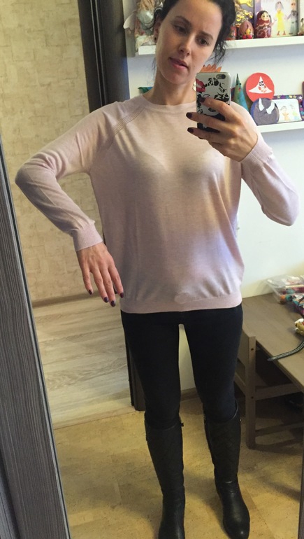(Топ кажется, что велик размер С, ХС нет в этой модели, сдать или оставить? смотрела в интернете как выглядит этот свитер, он тоже на девушке свободный, но мне как-то сомнительно)