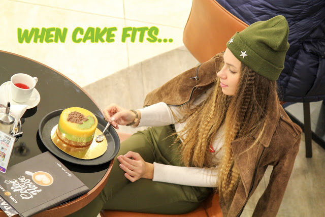 А следующий лук вышел спортивным. Давно я не носила свои сникерсы, хотя я их очень люблю за удобство и платформу... и цвет) ну и прошлась по местным магазинам, в страдивариусе откопала шапку и штаны. Штаны рекомендую - очень симпатично сидят! Ну и главный аксессуар образа - это торт от нашей Эрички! Кто не знал - она печет вкуснятина на заказ. Вот и нам с мужем к годовщине знакомства кондитер приготовила торт с овечкой (нашим талисманом), а про цветовую гамму мы не договаривались) так само получилось!