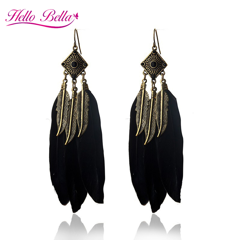 Скажите в моде ещё серьги-перья, примерно как на картинке. Можно их сочетать с черным платьем, с обычным круглым вырезом?