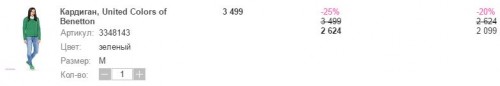 От этой цены еще минус личная. Выходит дешевле. Я так benetton покупала одежду. Разница вышла с магазинным ценником - 7000