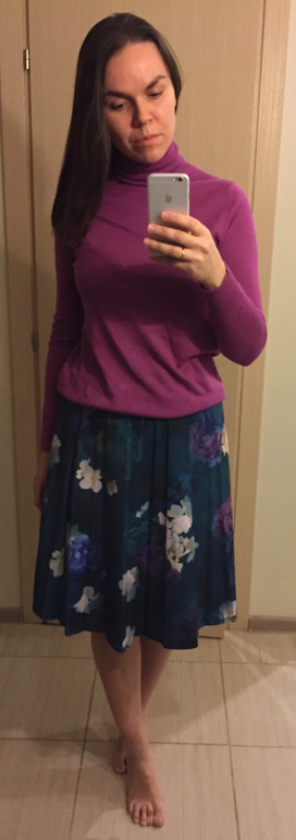 Понравилась ягодная, брюки и пончо на тебе, только цвет пончо никак. Кэмел мне спорно, а ты темнее меня. Может и мне ягодную взять к спорной юбке, черный верх не мой..