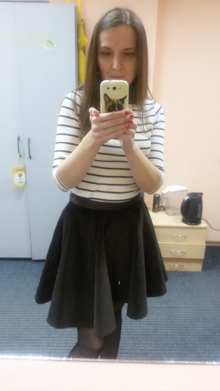 Ненавижу фото в зеркале показывать, но по-другому пока никак. Померила с тем, что под рукой было - вполне себе базовая вещь для повседневного гардероба. Думаю с нарядным топом (серебро отлично будет) можно посетить праздник-корпоратив.