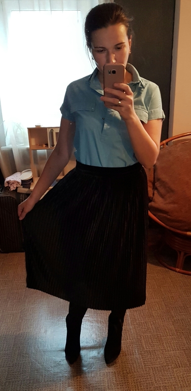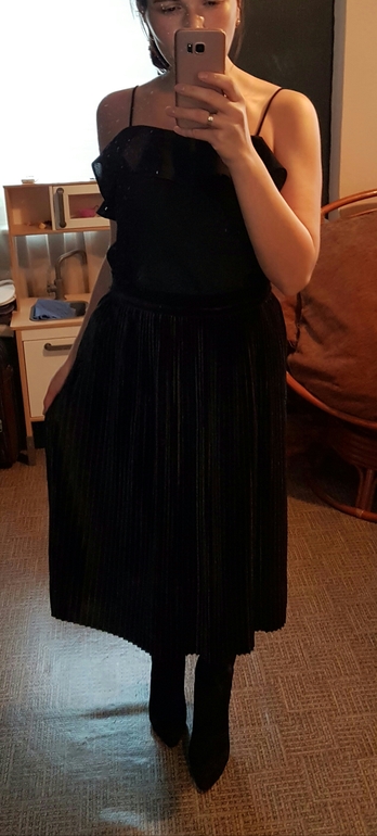 Вчера только получила бархатную плиссированную с Асоса) Ну я ее больше на повседневку брала, хотя может продумаю как Новогодний вариант с праздничным топом.