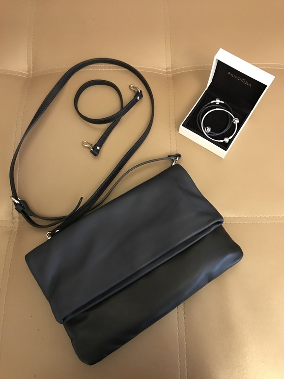 2. Браслеты Пандора. Кожаный двойной темно-синий и жесткий серебряный, ну и по шармику на каждый. Давно хотела именно эти браслеты