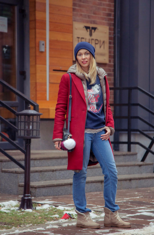 Возвращаясь к многослойности, решила поделиться идеей как носить пальто до минус пяти градусов. Все просто: под пальто подбираем тонкий пуховик и вместе они начинают согревать вас и радовать окружающих своим тандемом.