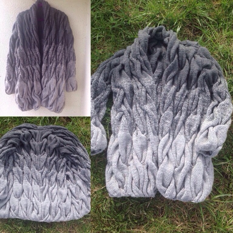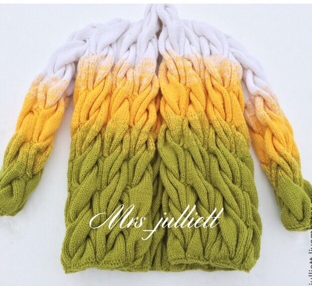 Мне подруга вязала такой, ниток ушло около 2 кг и сами понимаете сколько он весил )) так вот, при носке он очень потянулся вниз. Но на работе я его ношу с удовольствием, так как в нем очень тепло)). Но второй такой же кардиган я не хочу уже)