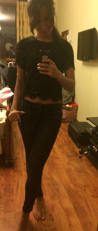С голым пузом, конечно, не буду ходить. Надела, чтобы представить с чёрными брюками