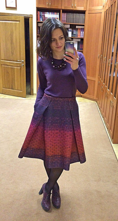 вот я уже давно обратила внимание, что фиолетовый Ваш цвет. Юбка хорошо сидит