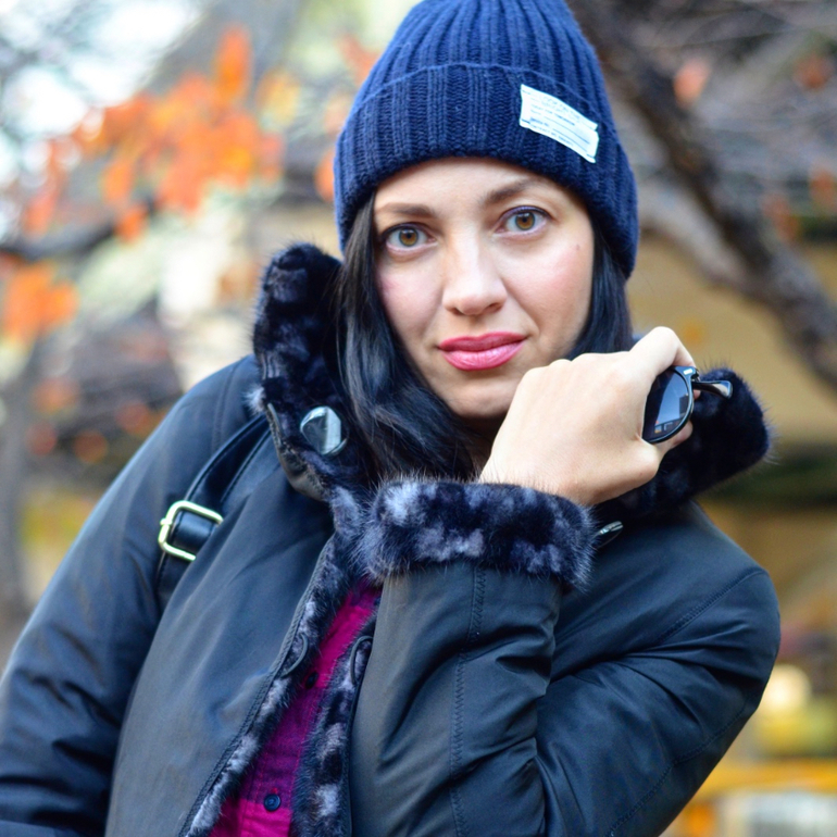А у меня сегодня шуба наоборот, то есть она мехом внутрь, японцы очень любят такие вот два в одном:мехом наружу - шубка, мехом внутрь - курточка.